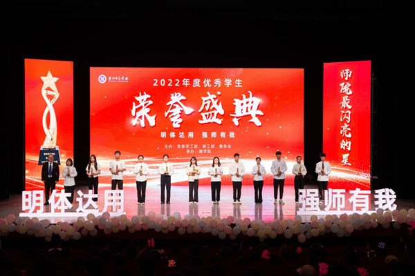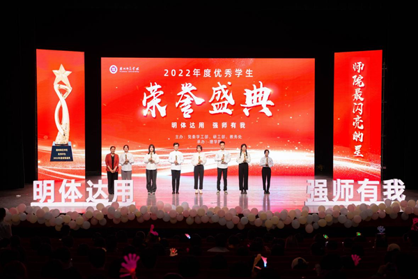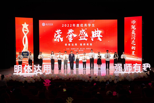 近年来,学校坚持立德树人根本任务,不断完善学生评优评奖体系,通过举办荣誉盛典等活动表彰先进、树立榜样,传承湖师精神,激励更多学子向榜样学习,志存高远、脚踏实地,让奋斗成为青春最亮丽的底色。