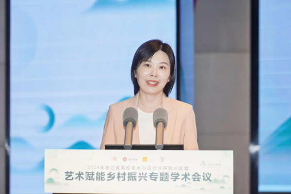 周斌在致辞中指出,建设宜居宜业和美乡村是全面建设社会主义现代化国家的重要内容,也是全面实施乡村振兴战略的总要求。推进并强化地方高校参与乡村建设,是加快实现乡村全面振兴的核心内容与关键环节,也是彰显高校履行时代使命和增强社会服务能力的重要表现。高校可以利用自身的教学科研资源、人才优势,为乡村提供技术支持、人才培养和文化创新等服务,促进乡村振兴的全面发展。他期待以本次“艺术赋能乡村振兴”专题学术会议为契机,推动艺术设计服务乡村振兴,探讨艺术赋能乡村振兴高效路径,推进浙江省美术与设计教育的高质量发展。